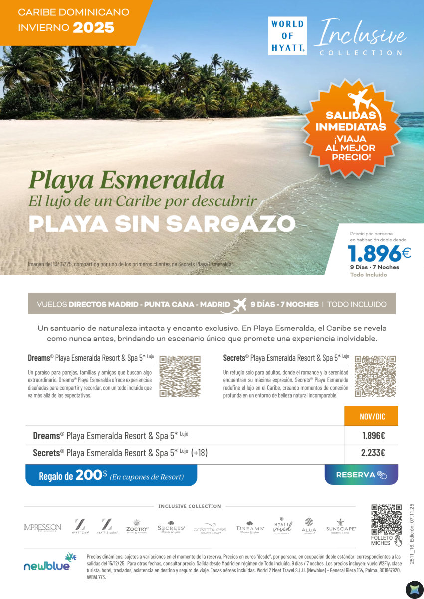 Nuevo destino Playa Esmeralda, Miches (Rep.Dom) y nuevos hoteles HYATT Inclusive Collection